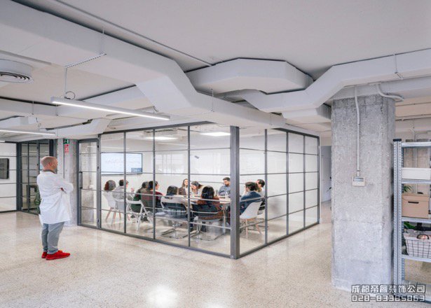 設計師恢復整體的混凝土結構,突出原始功能并在新舊架構之間建立聯系,使得各個空間擁有不同的心理感受。會議室這樣設計可以讓人心情趨于平靜,也能集中心思進行會議的探討。